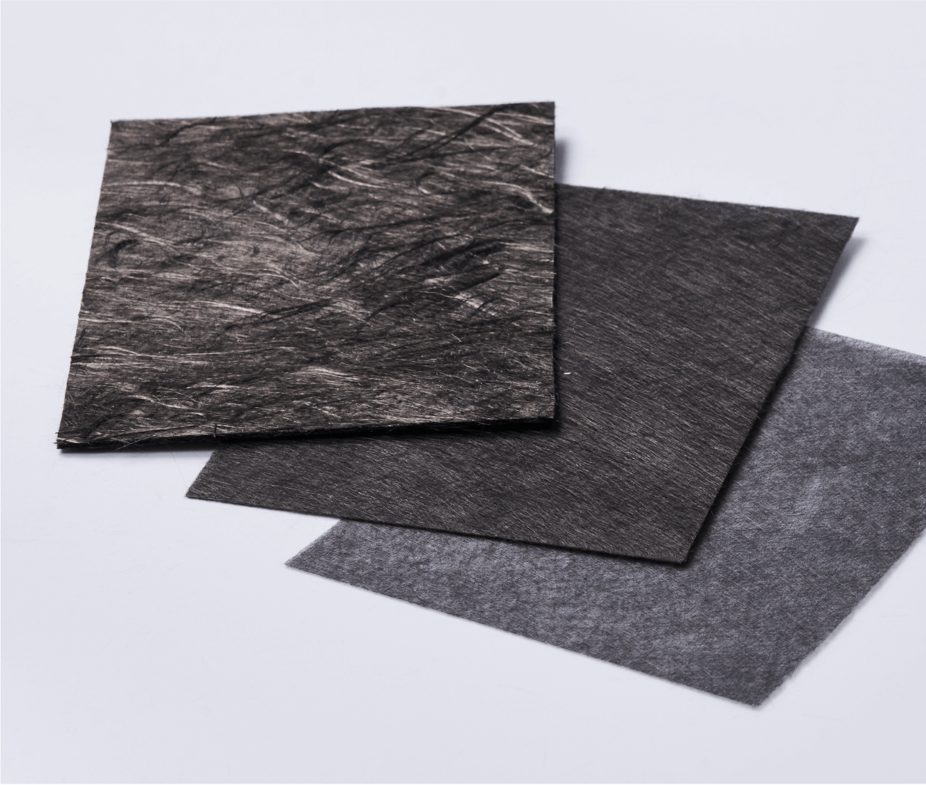 フェルトは、チョップドファイバーを乾式法(ニードルパンチ)で3次元に配向させ、不織布化した炭素繊維加工製品です。耐熱性に優れており、高温下での使用でもほとんど劣化することがありません。また、厚物成形にも有利な素材です。